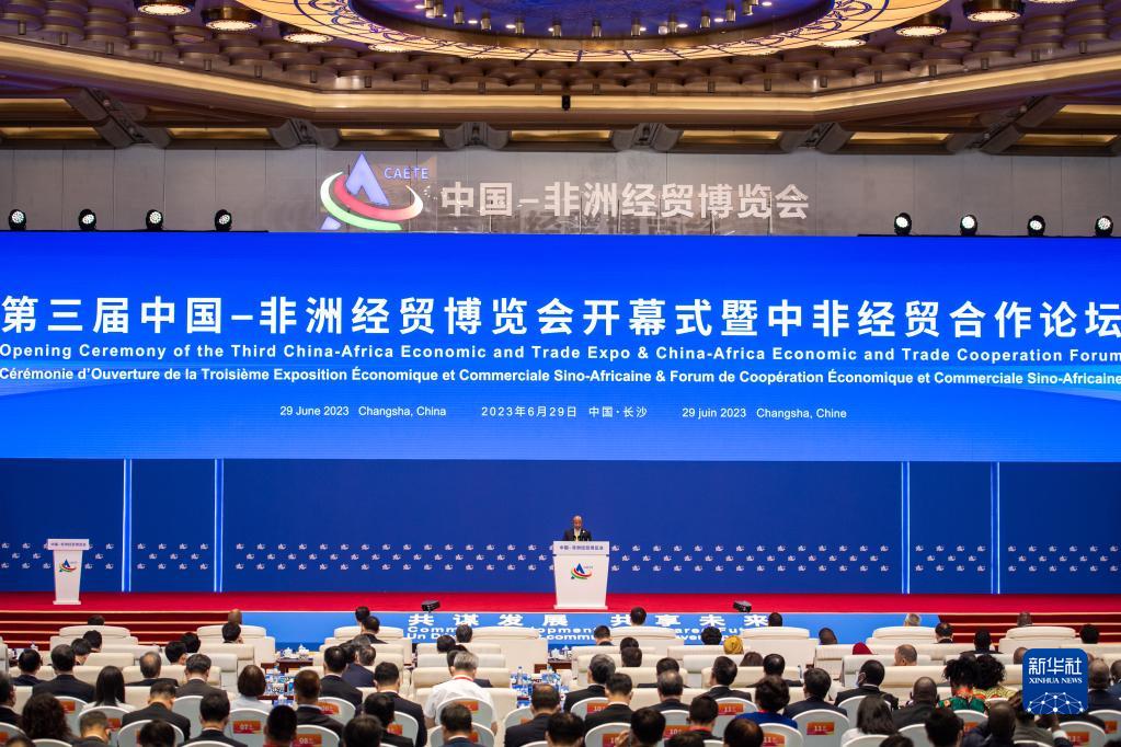 坦桑尼亞桑給巴爾總統姆維尼在第三屆中非經(jīng)貿博覽會(huì )開(kāi)幕式上發(fā)表講話(huà)(6月29日攝)。新華社記者 陳思汗 攝