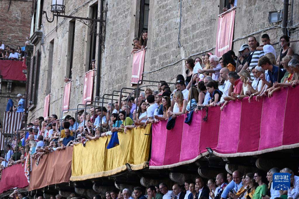 當日,錫耶納賽馬節在意大利托斯卡納大區古城錫耶納市中心的田野廣場(chǎng)舉行,吸引了眾多觀(guān)眾前來(lái)觀(guān)看。錫耶納賽馬節是世界聞名的意大利傳統民間活動(dòng),始于1656年,每年7月2日和8月16日舉行兩次。