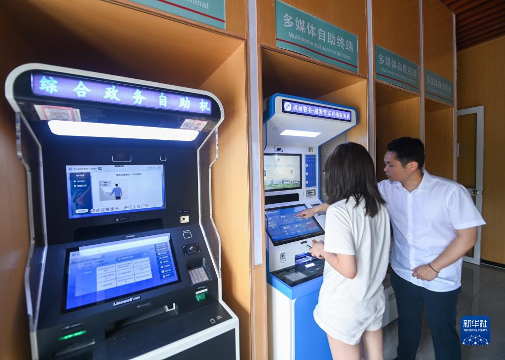 7月3日,在諸暨市店口鎮便民服務(wù)中心內,百姓在24小時(shí)自助服務(wù)區內辦理業(yè)務(wù)。