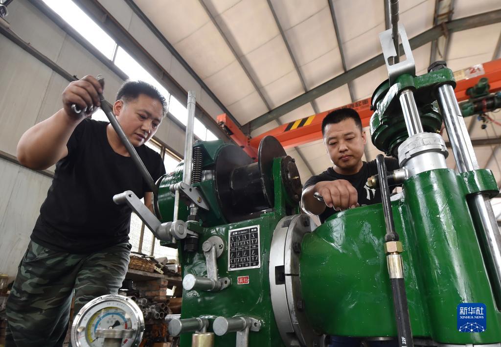 7月3日,工人在河北省晉州市營(yíng)里鎮一家地質(zhì)裝備企業(yè)生產(chǎn)車(chē)間工作。