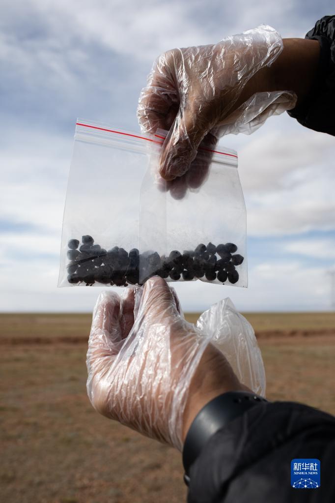 6月15日,中國科學(xué)院西北高原生物研究所王東向記者展示剛采集的藏羚羊新鮮糞便樣本。