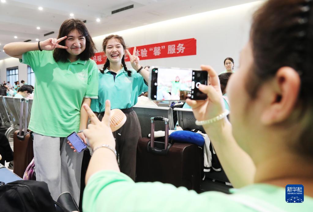 7月3日,“內高班”學(xué)生在蘇州火車(chē)站候車(chē)時(shí)自拍留念。