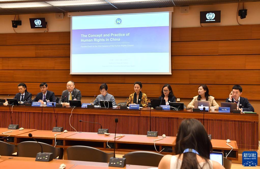 在聯(lián)合國人權理事會(huì )第53屆會(huì )議舉行之際,中國人權研究會(huì )3日在日內瓦萬(wàn)國宮舉行“中國的人權理念與實(shí)踐”主題邊會(huì ),有關(guān)專(zhuān)家在會(huì )上就中國人權教育、新疆?huà)D女權益、西藏活佛轉世制度與宗教信仰自由、中國式現代化與中國人權事業(yè)發(fā)展、所謂“強迫勞動(dòng)”的涉疆謊言、新疆的語(yǔ)言文字保護與發(fā)展、西藏地方和祖國關(guān)系的歷史真相等話(huà)題介紹了情況。