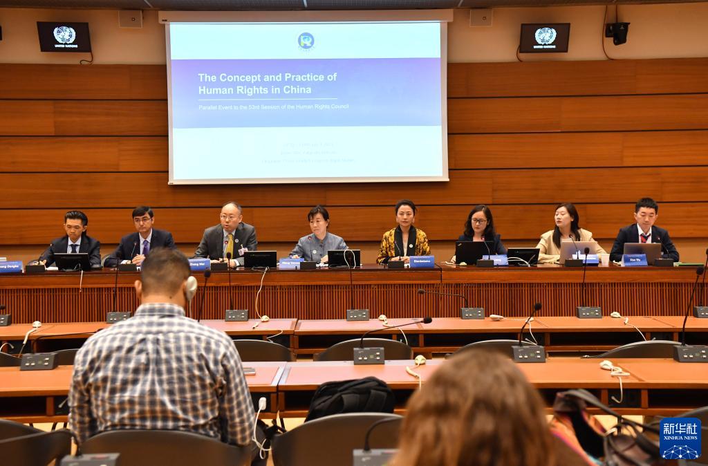 在聯(lián)合國人權理事會(huì )第53屆會(huì )議舉行之際,中國人權研究會(huì )3日在日內瓦萬(wàn)國宮舉行“中國的人權理念與實(shí)踐”主題邊會(huì ),有關(guān)專(zhuān)家在會(huì )上就中國人權教育、新疆?huà)D女權益、西藏活佛轉世制度與宗教信仰自由、中國式現代化與中國人權事業(yè)發(fā)展、所謂“強迫勞動(dòng)”的涉疆謊言、新疆的語(yǔ)言文字保護與發(fā)展、西藏地方和祖國關(guān)系的歷史真相等話(huà)題介紹了情況。