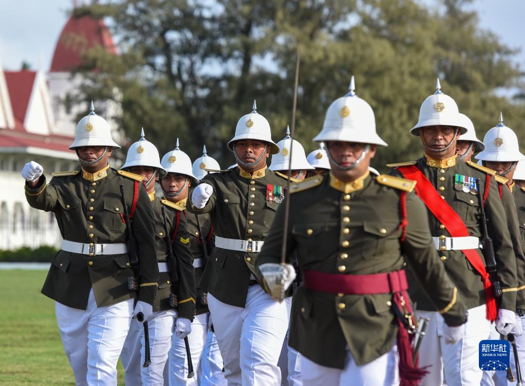 7月4日,軍人在湯加首都努庫阿洛法參加閱兵式。