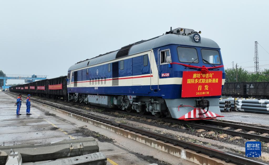7月4日,首趟廊坊“中吉烏”國際多式聯(lián)運班列駛出廊坊北鐵路貨場(chǎng)。