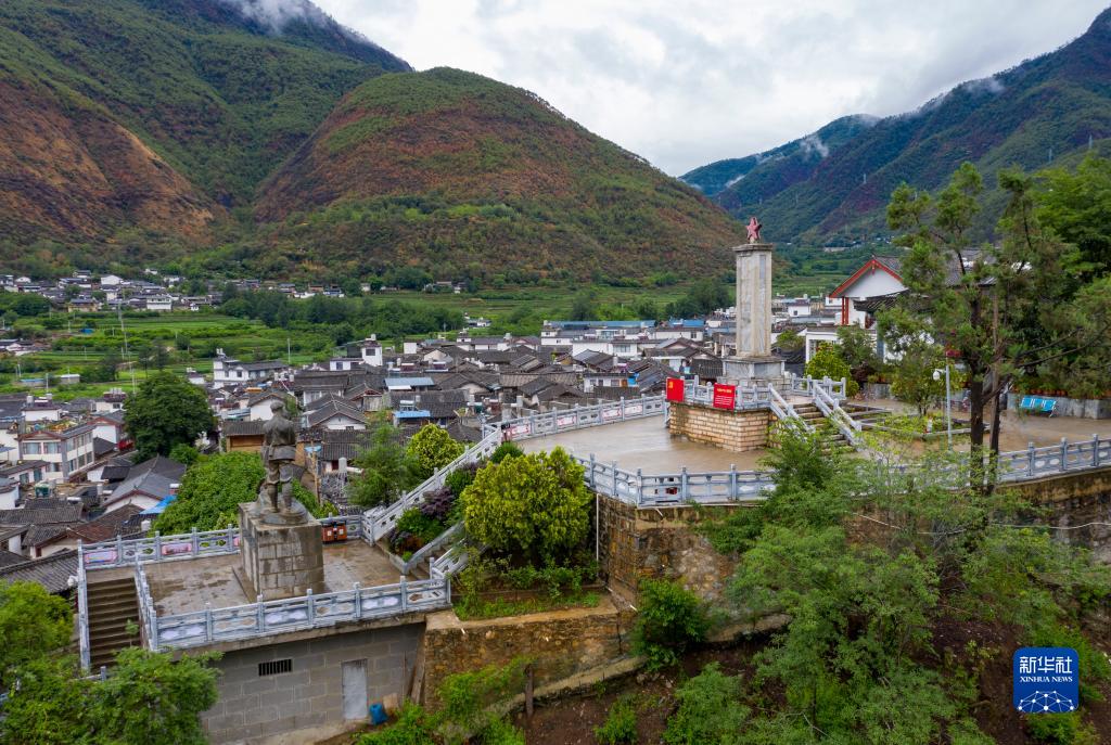 這是6月13日拍攝的麗江市石鼓鎮紅軍長(cháng)征過(guò)麗江紀念館一景(無(wú)人機照片)。