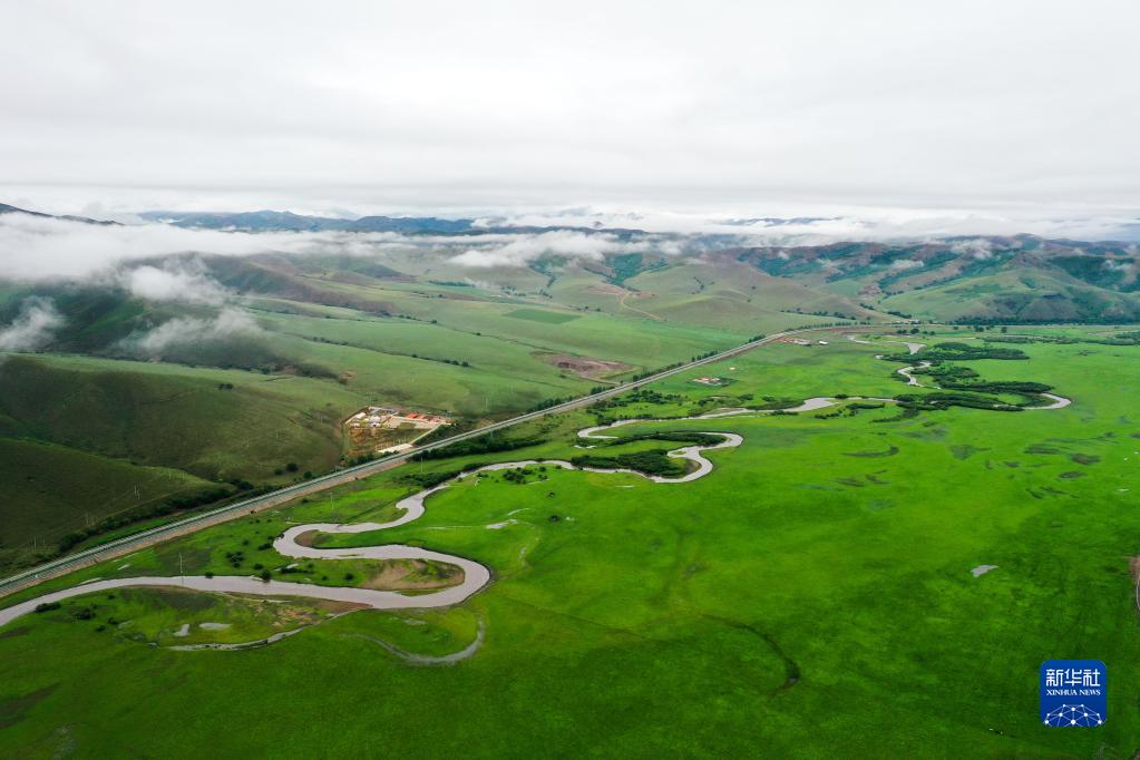 7月5日拍攝的烏蘭毛都草原夏日風(fēng)光(無(wú)人機照片)。