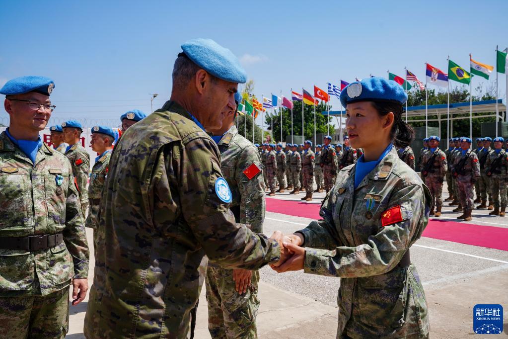 中國第21批赴黎巴嫩維和部隊授勛儀式4日在黎南部辛尼亞村的中國維和營(yíng)舉行,410名中國維和官兵全部被授予聯(lián)合國“和平榮譽(yù)勛章”。