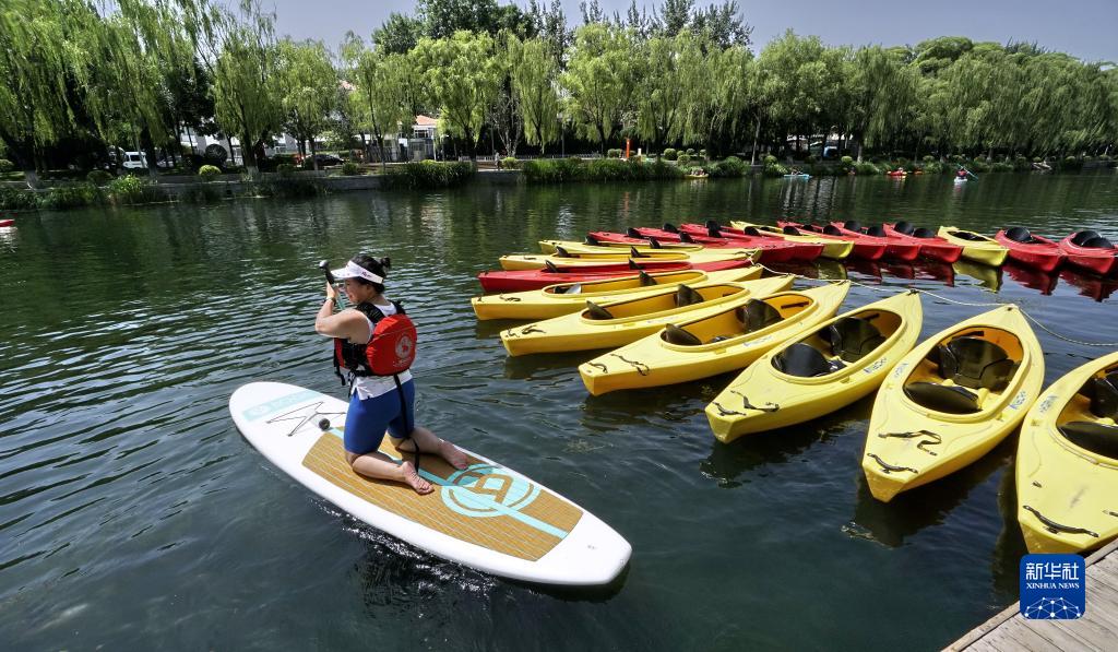 7月5日,市民在亮馬河上參加水上運動(dòng)。