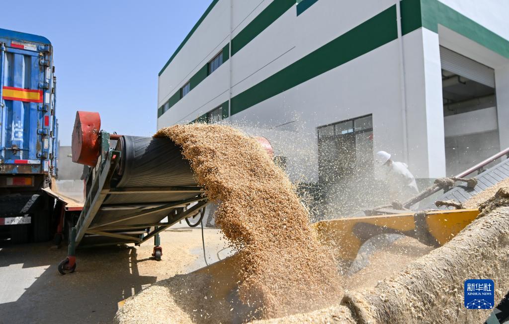 7月5日,在中央儲備糧天津東麗直屬庫有限公司大港分公司,工作人員在轉運小麥。