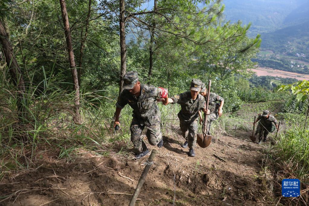 7月5日,在重慶市萬(wàn)州區長(cháng)灘鎮,武警官兵在受災村莊摸排搜救。