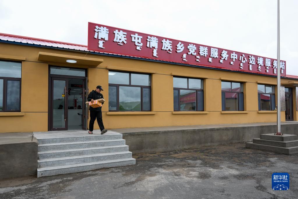 7月5日,在內蒙古興安盟科爾沁右翼前旗滿(mǎn)族屯滿(mǎn)族鄉黨群服務(wù)中心邊境服務(wù)站,牧民取完快遞后離開(kāi)服務(wù)站。
