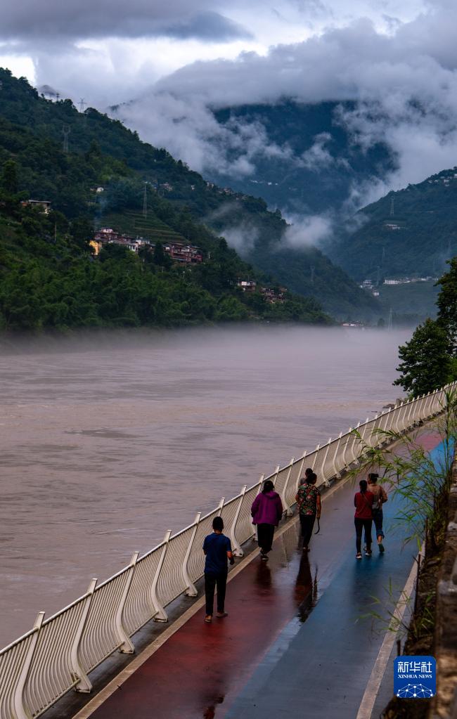 “國道之行 從雪山奔向大?!眻蟮澜M沿著(zhù)219國道來(lái)到云南怒江州貢山縣。傍晚時(shí)分,一層薄霧飄蕩在怒江的江面上,仿佛一條白色的薄紗。