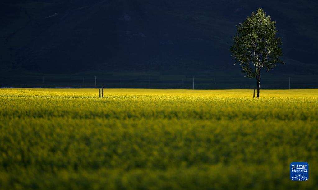 夏日,在位于祁連山腹地的青海省海北藏族自治州門(mén)源回族自治縣境內,油菜花競相綻放,花海、雪山、草原共同組成色彩斑斕的祁連山夏日畫(huà)卷。