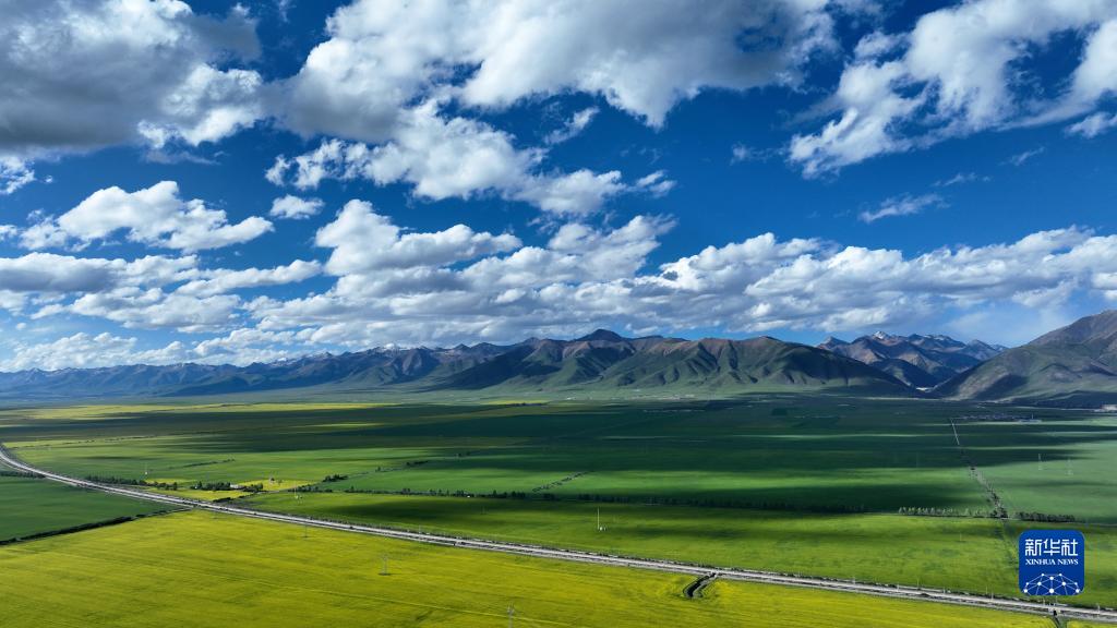 夏日,在位于祁連山腹地的青海省海北藏族自治州門(mén)源回族自治縣境內,油菜花競相綻放,花海、雪山、草原共同組成色彩斑斕的祁連山夏日畫(huà)卷。