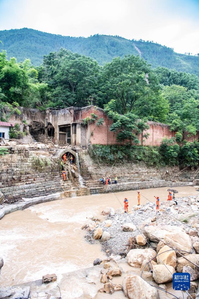 7月6日,在重慶市萬(wàn)州區長(cháng)灘鎮林場(chǎng)村,搜救人員在開(kāi)展搜救。