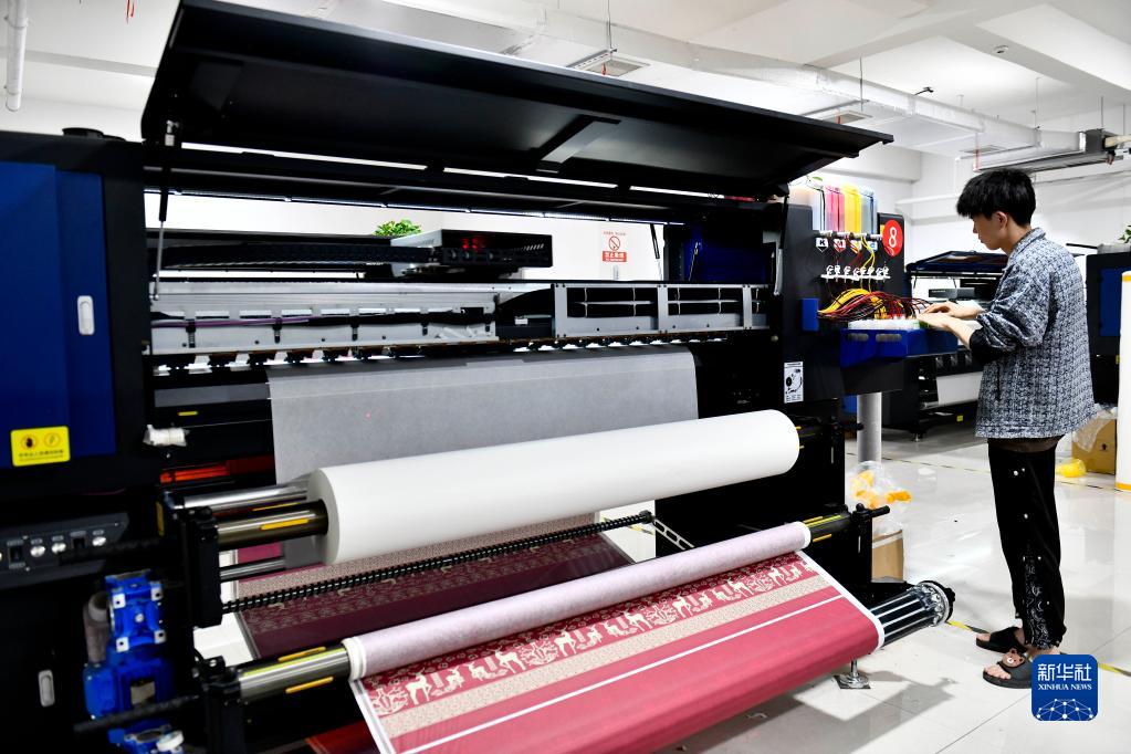 7月6日,在曹縣大集鎮花王數碼印花廠(chǎng),工作人員操作設備打印布樣。