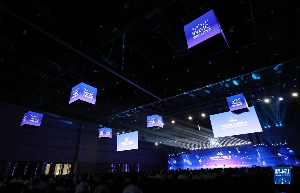 這是7月6日拍攝的2023世界人工智能大會(huì )開(kāi)幕式現場(chǎng)。