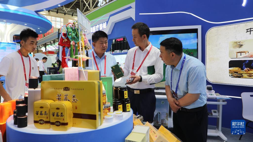 7月6日,在第二十九屆中國蘭州投資貿易洽談會(huì )生物醫藥館,參會(huì )者在了解展品情況。