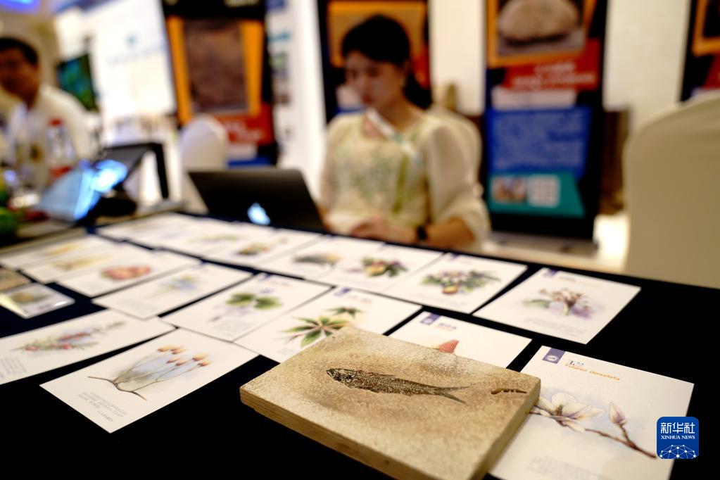 7月5日在第七屆地球系統科學(xué)大會(huì )上拍攝的化石科普展品。