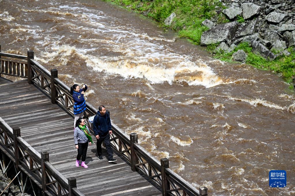 7月6日,游客在阿爾山國家森林公園大峽谷游玩。