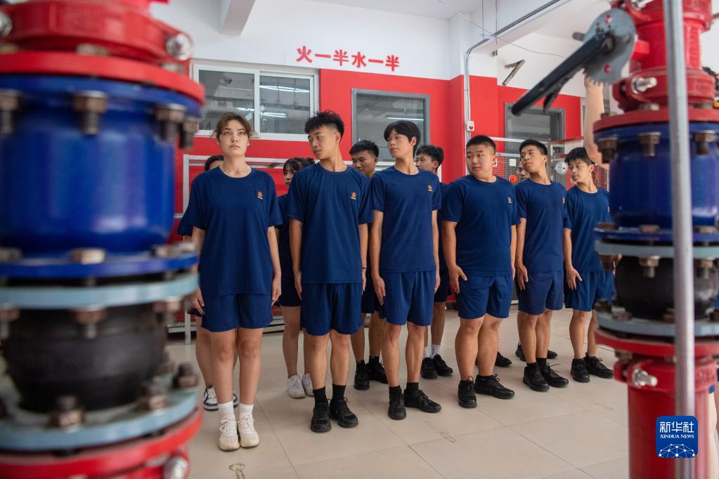 6月28日,熱依來(lái)·吉力力(左一)與同學(xué)們在建筑消防設備實(shí)訓課上整隊。