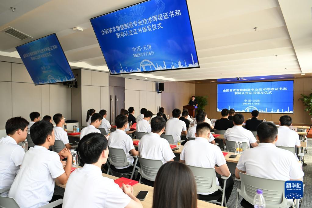 7月6日,天津舉行全國首批智能制造專(zhuān)業(yè)技術(shù)等級證書(shū)頒發(fā)儀式。該證書(shū)由中國機械工程學(xué)會(huì )頒發(fā),職業(yè)名稱(chēng)為智能制造工程技術(shù)人員,職業(yè)方向是智能裝備與產(chǎn)線(xiàn)應用。