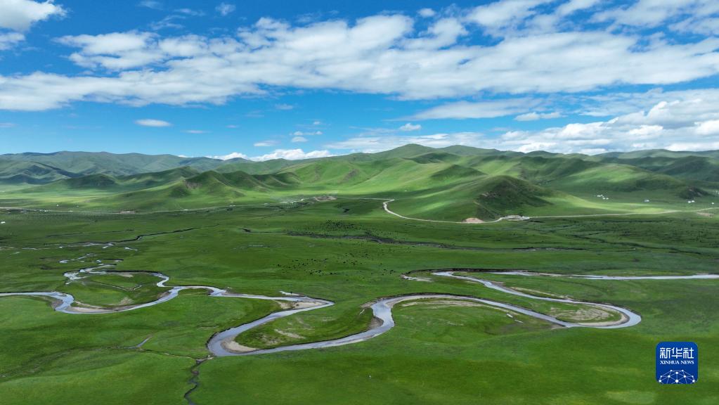 這是瑪曲縣阿萬(wàn)倉濕地景色(7月6日攝,無(wú)人機照片)。