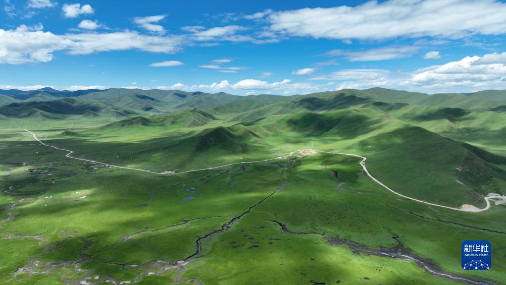 這是瑪曲縣阿萬(wàn)倉濕地景色(7月6日攝,無(wú)人機照片)。