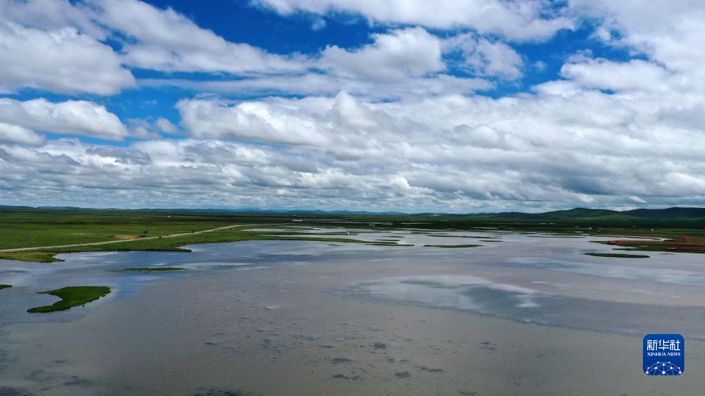 這是瑪曲縣河曲馬場(chǎng)的濕地景色(7月5日攝,無(wú)人機照片)。