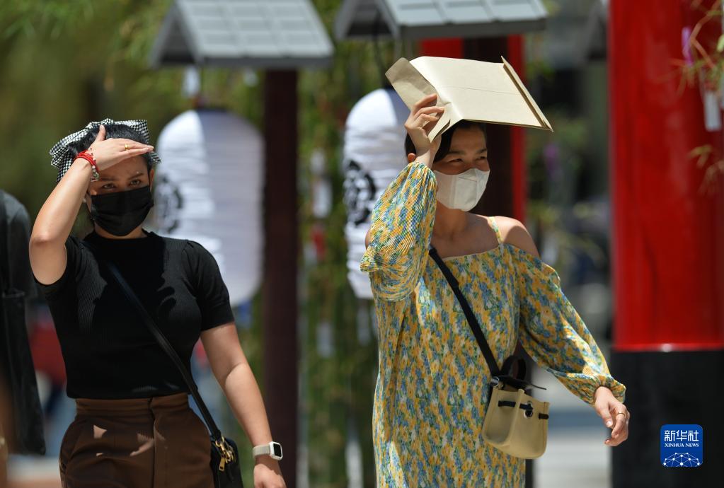 7月7日,行人在泰國曼谷街頭遮陽(yáng)。