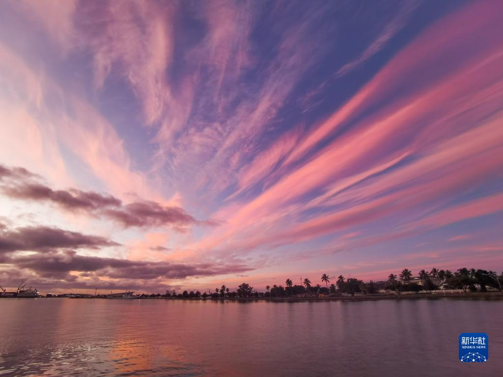 這是7月5日在湯加首都努庫阿洛法拍攝的朝霞。
