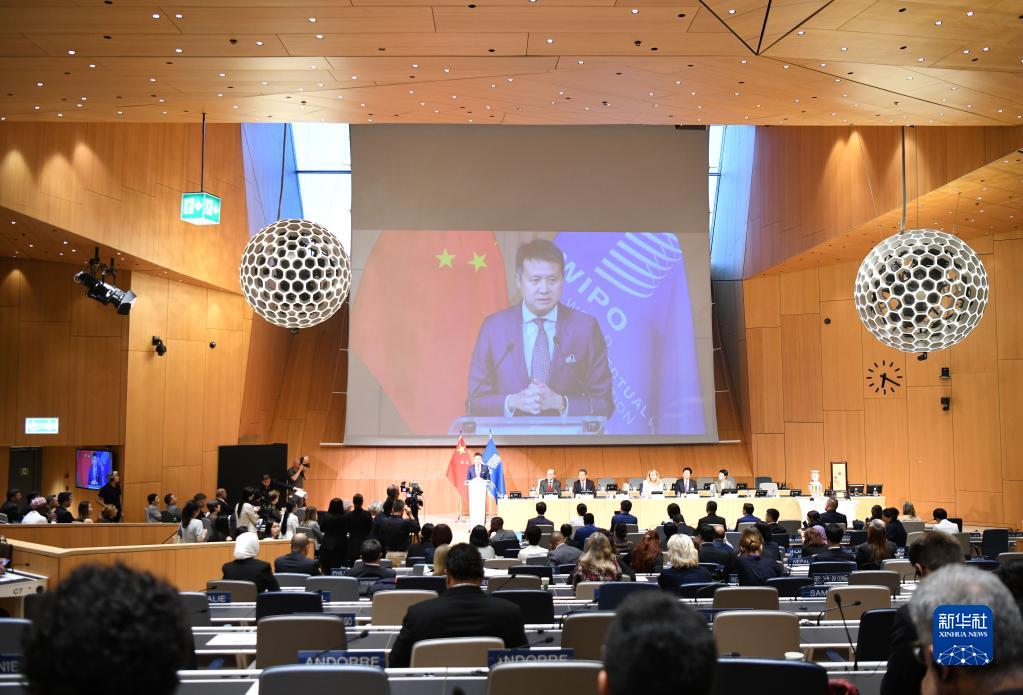 7月6日,在瑞士日內瓦,世界知識產(chǎn)權組織總干事鄧鴻森在中國與世界知識產(chǎn)權組織合作五十周年系列活動(dòng)——世界知識產(chǎn)權組織主場(chǎng)活動(dòng)上講話(huà)。