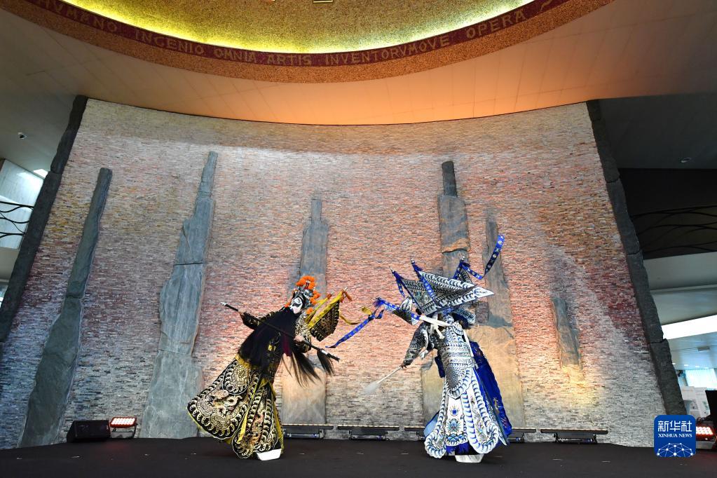 7月6日,在瑞士日內瓦,表演者在中國與世界知識產(chǎn)權組織合作五十周年系列活動(dòng)——世界知識產(chǎn)權組織主場(chǎng)活動(dòng)上表演京劇。