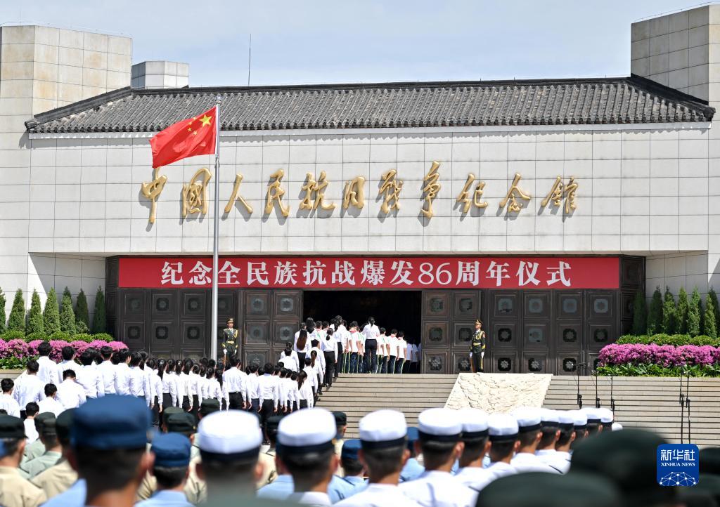 當日,紀念全民族抗戰爆發(fā)86周年儀式在中國人民抗日戰爭紀念館舉行。