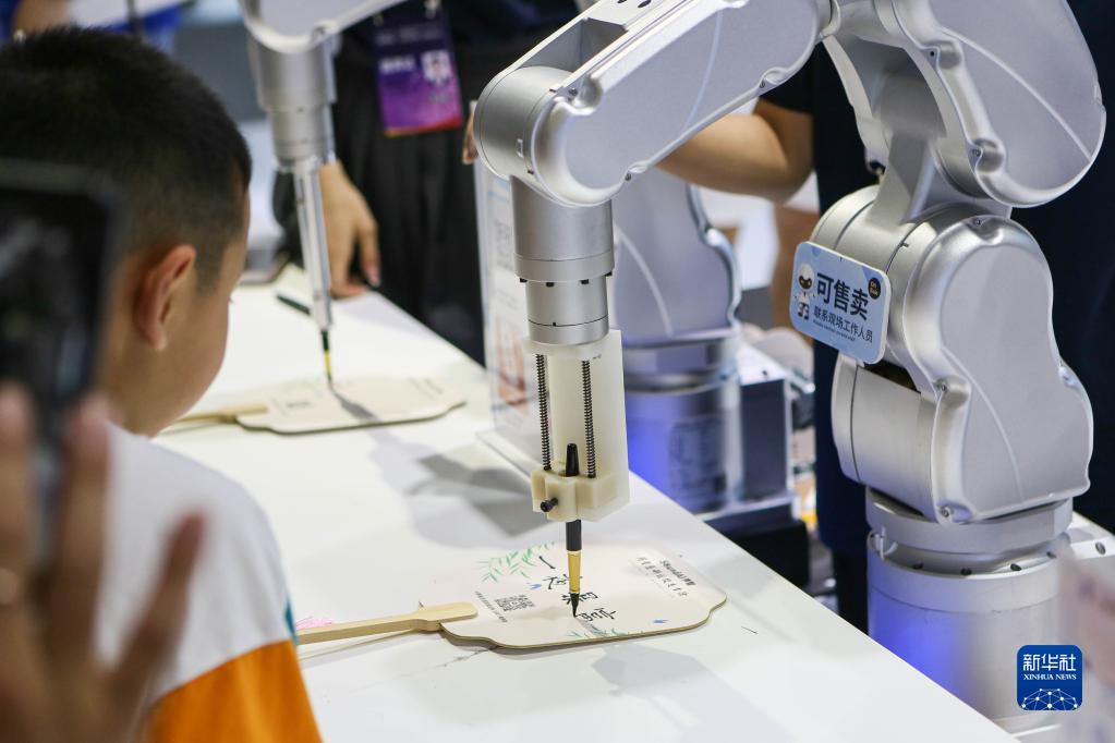 7月7日,Azero機械手臂進(jìn)行書(shū)法表演。