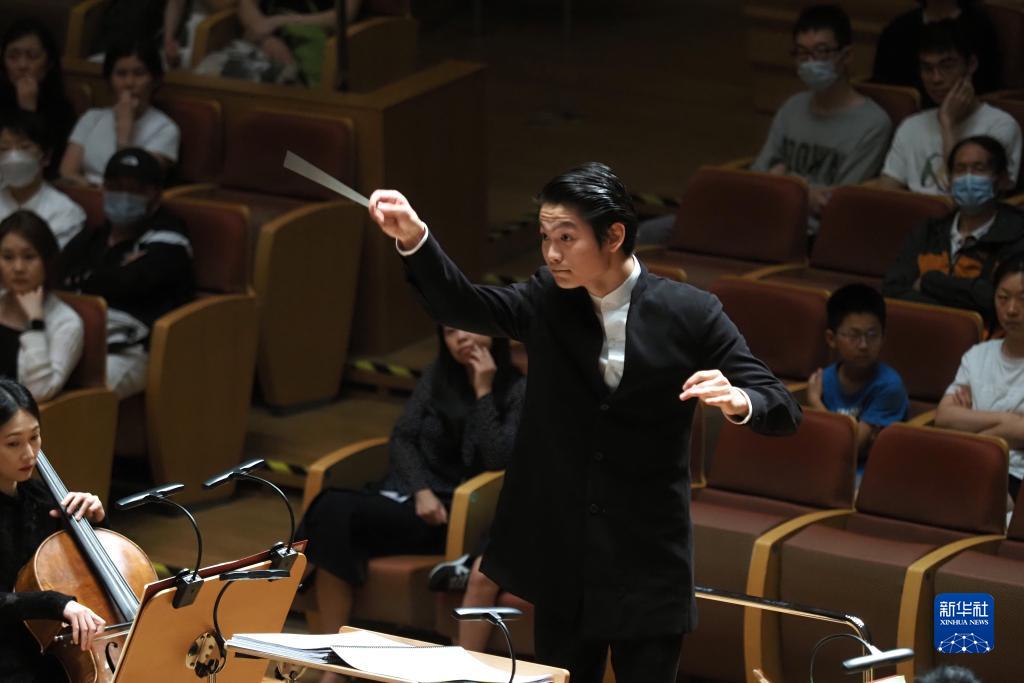 7月7日,在2023上海夏季音樂(lè )節開(kāi)幕音樂(lè )會(huì )上,青年指揮金郁礦指揮上海交響樂(lè )團演奏《三體》主題幻想曲。
