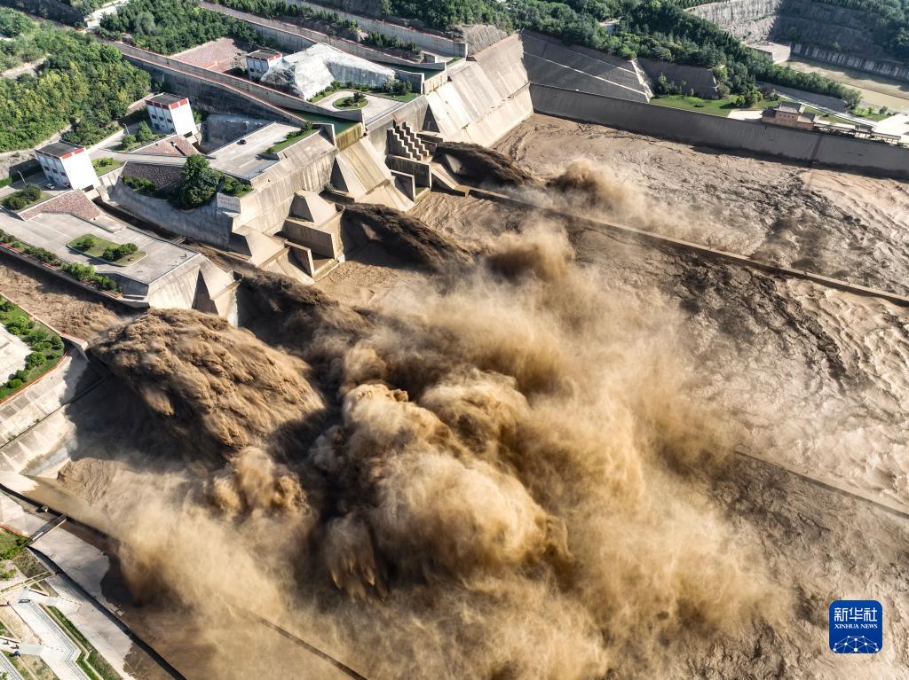 這是7月7日拍攝的黃河小浪底水庫排沙出庫場(chǎng)景(無(wú)人機照片)。