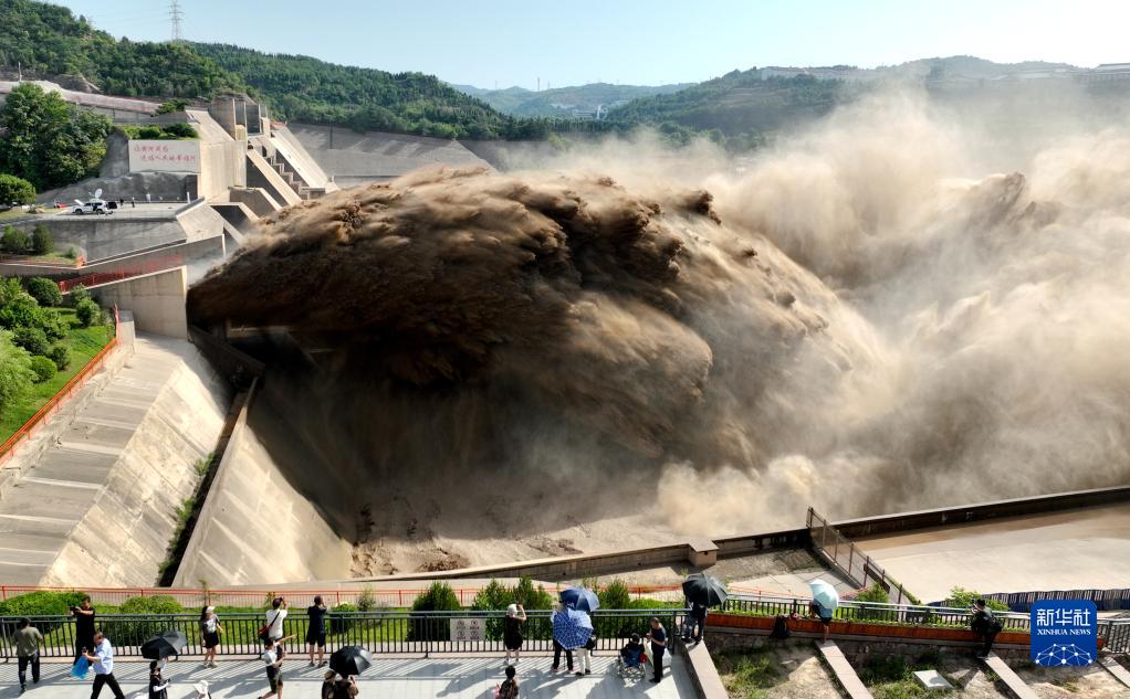 當日,黃河小浪底水庫排沙出庫,裹挾著(zhù)大量泥沙的水流從排沙洞奔騰而出,十分壯觀(guān),吸引眾多游客前來(lái)觀(guān)賞。
