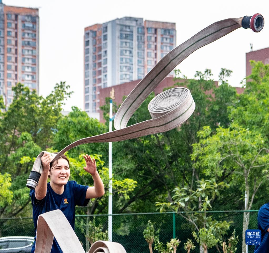 6月28日,熱依來(lái)·吉力力在進(jìn)行消防專(zhuān)業(yè)體能訓練。在距離家鄉新疆兩千公里的重慶江津區,她即將上崗成為實(shí)習消防員。