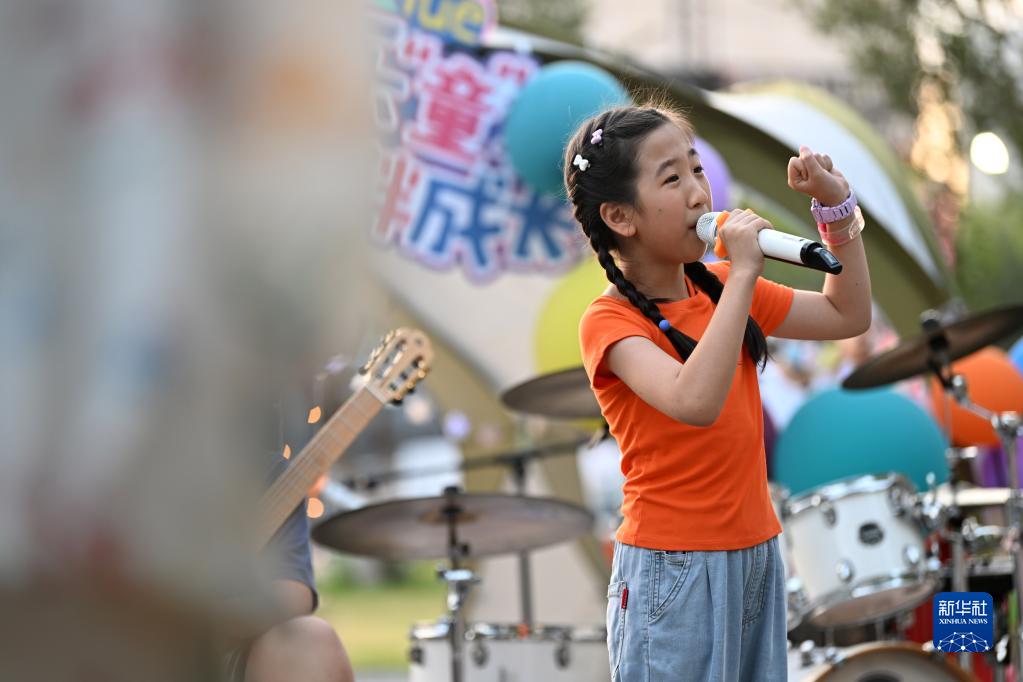 7月8日,小朋友在帳篷音樂(lè )會(huì )上表演節目。