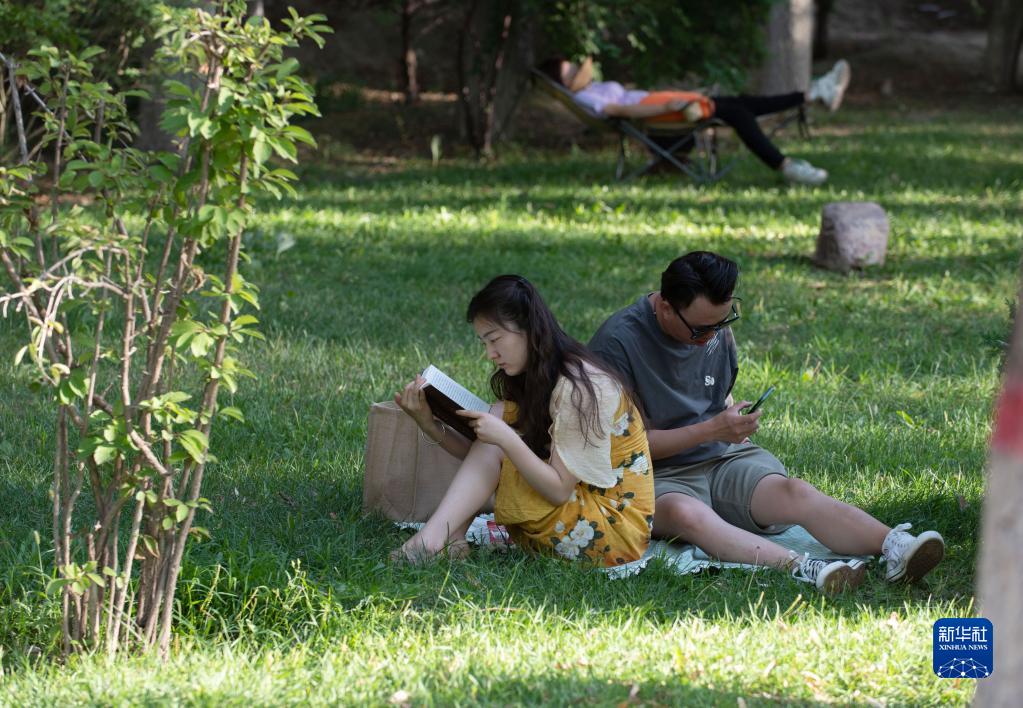 7月8日,市民在銀川市森林公園閱讀。