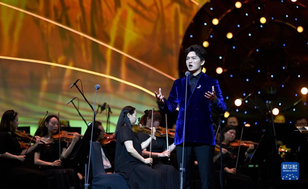 7月8日,在西安“感悟初心?與黨同行”經(jīng)典歌曲交響音樂(lè )會(huì )現場(chǎng),演唱者王凱在演唱歌曲《懷念戰友》。