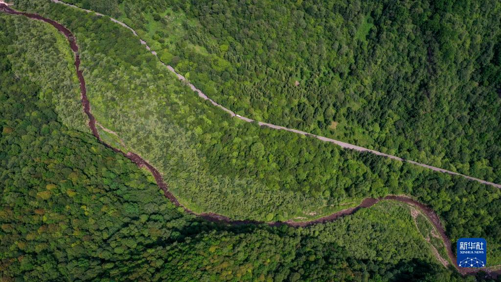 7月8日,游客乘坐觀(guān)光車(chē)在六盤(pán)山國家森林公園游玩(無(wú)人機照片)。