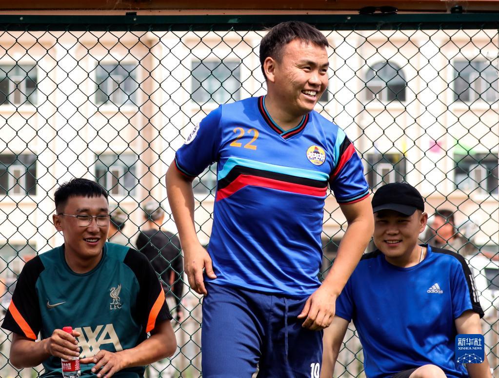 6月27日,在錫尼河鎮組織的一場(chǎng)友誼賽上,巴達瑪斯仁(左二)準備上場(chǎng)。