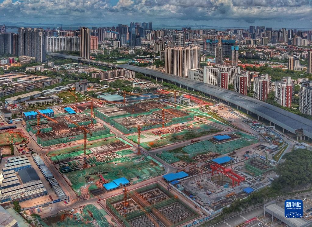 深圳南山水廠(chǎng)擴建工程建設現場(chǎng)(無(wú)人機照片,7月9日攝)。