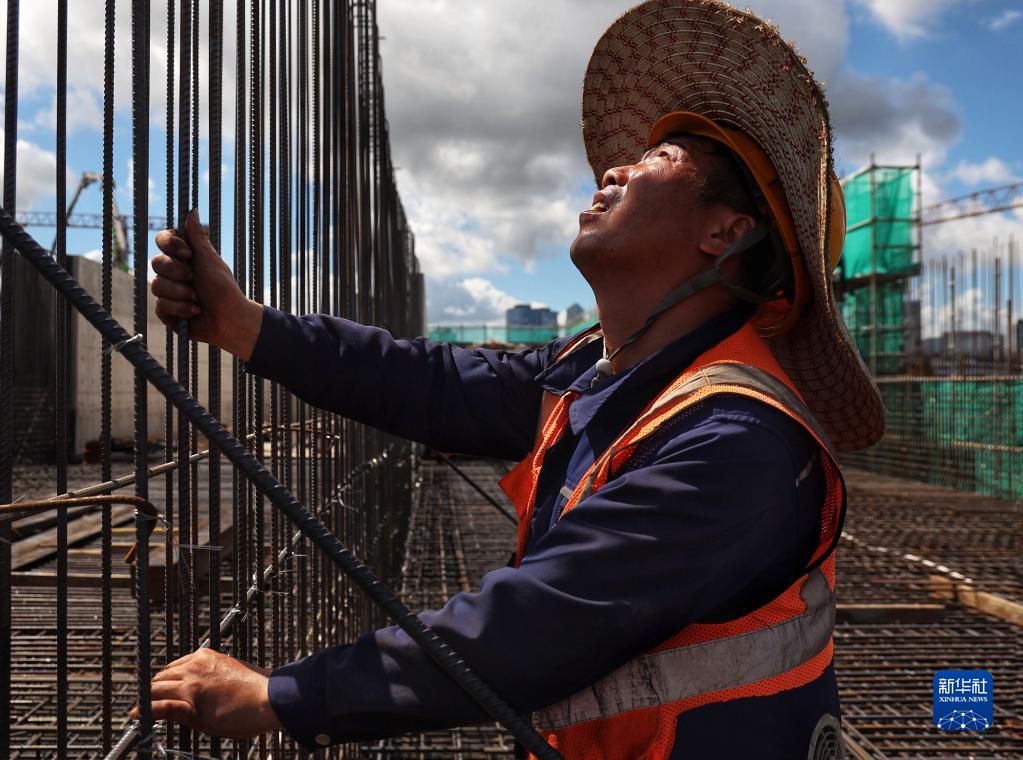 7月9日,中鐵上海局施工人員在南山水廠(chǎng)建設現場(chǎng)綁扎鋼筋。