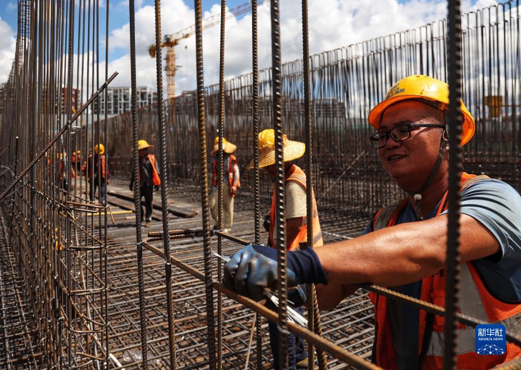 7月9日,中鐵上海局施工人員在南山水廠(chǎng)建設現場(chǎng)綁扎鋼筋。