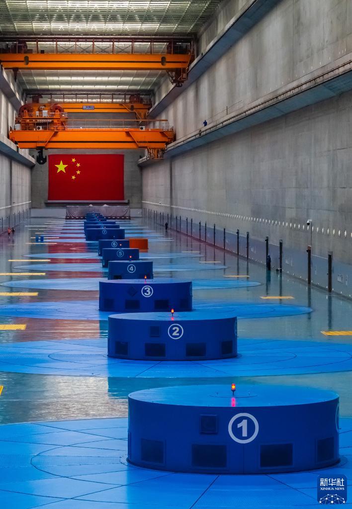 7月10日在湖北省宜昌市拍攝的長(cháng)江三峽左岸發(fā)電機組內景。